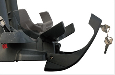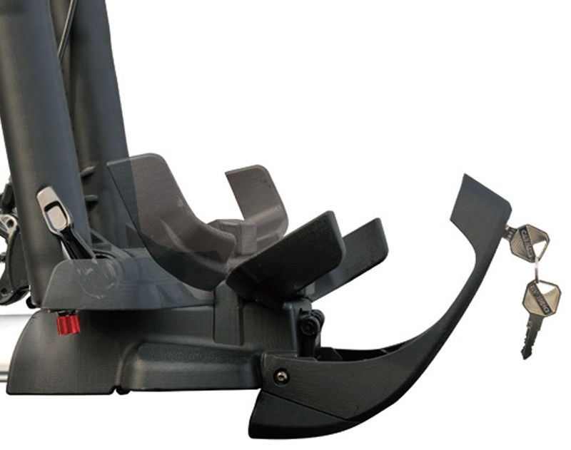 バー下に回り込む取付金具が露出しないスタイリッシュ取付。エアロベースバーに装備されているTスロットに取付できる専用アタッチメント。Tスロット専用取付。 フォーク幅:100mm、9mmアクスルシャフトの一般的クイックリリース車に対応。 ディスクブレーキ対応。ロードからMTBまで対応するフルスペックモデル。 キーロック付き。 適応タイヤサイズ:20-29インチ 適応タイヤ幅:18c-2.7インチ