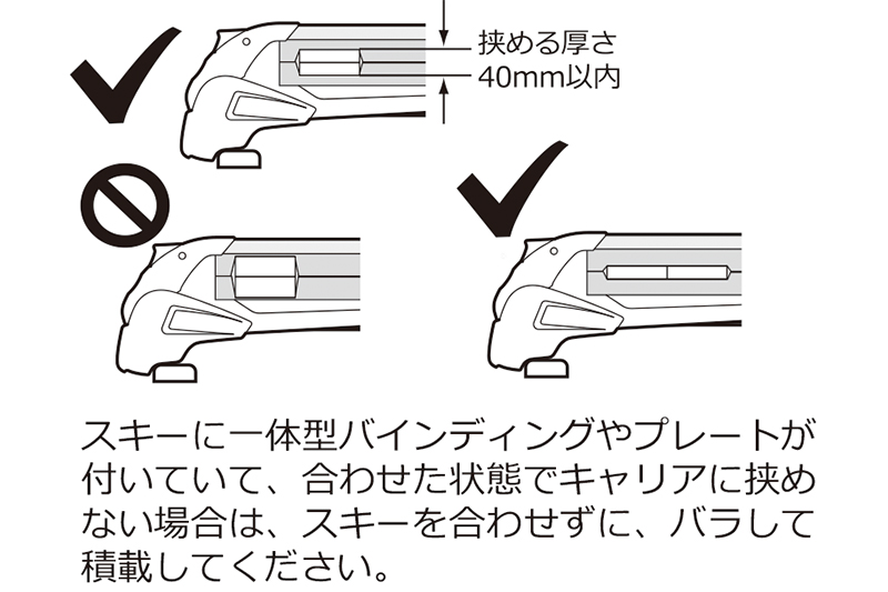 HEIGHT:185mm積載可能寸法:スキー板 厚み43mm以下、板幅80mm以下 スノーボード 厚み19mm以下、板幅290mm以下